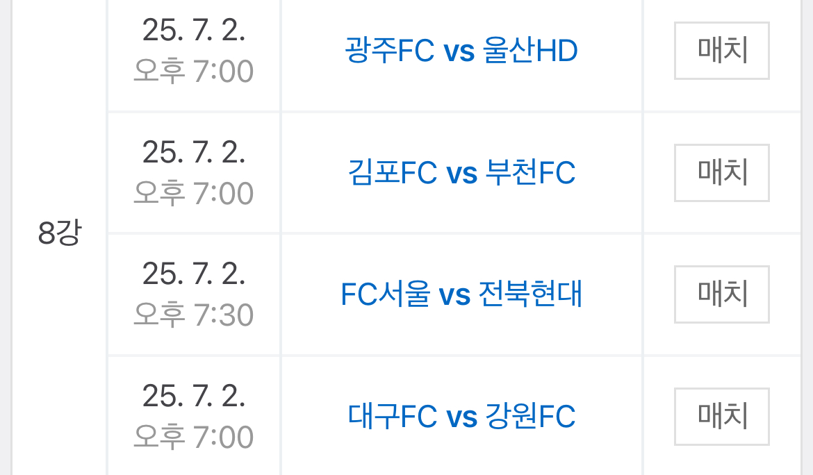 코리아컵 경기들의 승패를 모두 맞춰주세요.