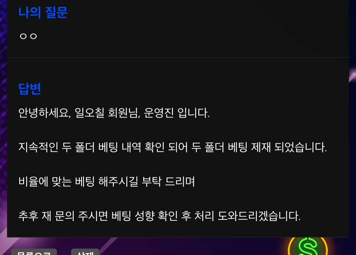 아니 두폴 배팅 막으면 배팅뭐하란거지? 작성자 정보 일오칠쪽지보내기 메일보내기 자기소개 아이디로 검색 전체게시물쪽지보내기 메일보내기 자기소개 아이디로 검색 전체게시물 작성 작성일 2025.08.12 01:07 컨텐츠 정보 107 조회 3 댓글 목록 관리 글검색 본문 멤피스뭐임 관련자료 이전 아니 제재를 쪽지로 미리알려주지 배팅항때 제재라고 문구뜨는게 말이되나 작성일 2025.08.12 01:20 다음 일오칠 할매밥상 작성일 2025.08.10 14:56 댓글 3 달먹님의 댓글 달먹쪽지보내기 메일보내기 자기소개 아이디로 검색 전체게시물쪽지보내기 메일보내기 자기소개 아이디로 검색 전체게시물 작성일 2025.08.12 01:15 으아악 ㅠ 으아악 ㅠ 기커조님의 댓글 기커조쪽지보내기 메일보내기 자기소개 아이디로 검색 전체게시물쪽지보내기 메일보내기 자기소개 아이디로 검색 전체게시물 작성일 2025.08.12 10:45 뭐지 ㄷ 뭐지 ㄷ 돈미새토린이님의 댓글 돈미새토린이쪽지보내기 메일보내기 자기소개 아이디로 검색 전체게시물쪽지보내기 메일보내기 자기소개 아이디로 검색 전체게시물 작성일 2025.08.12 13:45 허어ㅠ 허어ㅠ 로그인한 회원만 댓글 등록이 가능합니다. 목록 관리 글검색