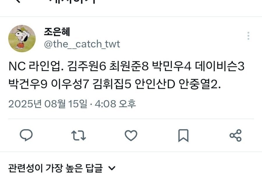NC 라인업 작성자 정보 로로랜드쪽지보내기 메일보내기 자기소개 아이디로 검색 전체게시물쪽지보내기 메일보내기 자기소개 아이디로 검색 전체게시물 작성 작성일 2025.08.15 16:16 컨텐츠 정보 142 조회 2 댓글 목록 본문 참고하라우 관련자료 이전 괜히 으제 선픽 가가지꼬 작성일 2025.08.15 16:16 다음 크보 개라슼덜 작성일 2025.08.15 16:16 댓글 2 인생은도바기다님의 댓글 인생은도바기다쪽지보내기 메일보내기 자기소개 아이디로 검색 전체게시물쪽지보내기 메일보내기 자기소개 아이디로 검색 전체게시물 작성일 2025.08.15 16:18 안인산......... 이 개라슼 이름에서부터 악산의 냄새가 난데이... 오널 NC 지면 이 색기 탓이데이 안인산......... 이 개라슼 이름에서부터 악산의 냄새가 난데이... 오널 NC 지면 이 색기 탓이데이 두두님의 댓글 두두쪽지보내기 메일보내기 자기소개 아이디로 검색 전체게시물쪽지보내기 메일보내기 자기소개 아이디로 검색 전체게시물 작성일 2025.08.15 18:31 참고 참고 로그인한 회원만 댓글 등록이 가능합니다. 목록