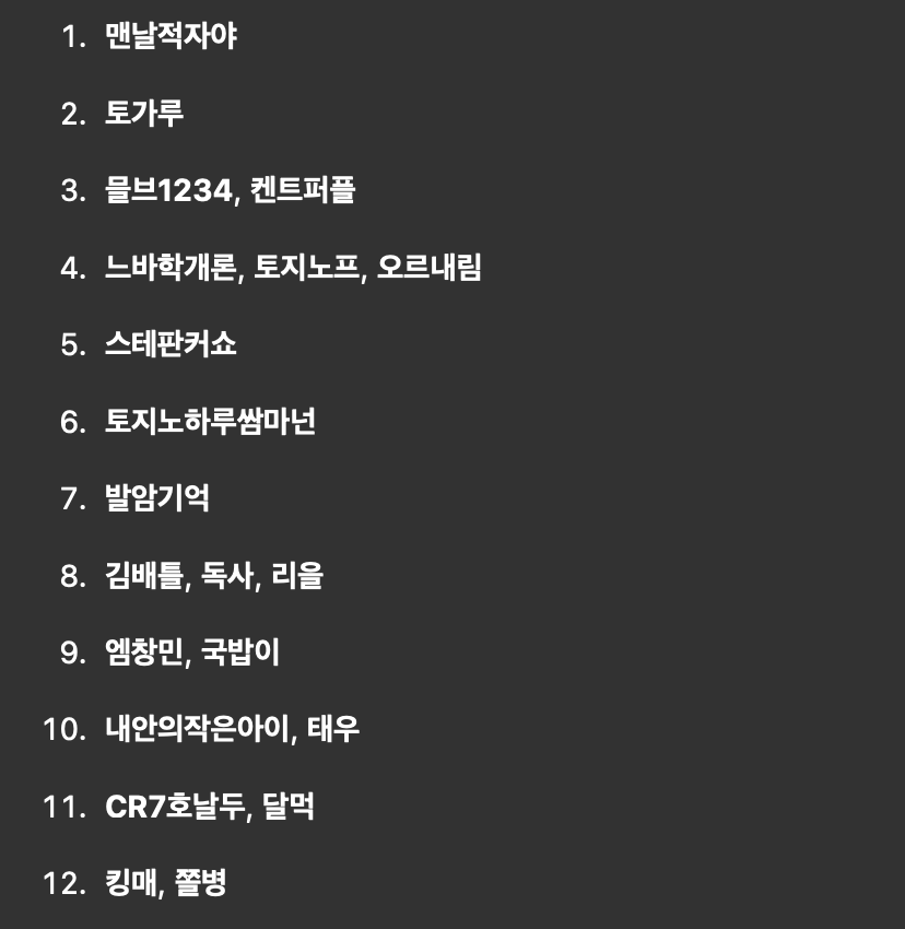 경마 정리 무효는 안 나오겠노 ㄷㄷ 작성자 정보 흑자머신쪽지보내기 메일보내기 자기소개 아이디로 검색 전체게시물쪽지보내기 메일보내기 자기소개 아이디로 검색 전체게시물 작성 작성일 2025.07.07 17:58 컨텐츠 정보 372 조회 1 댓글 목록 본문 ㄱㄱ 관련자료 이전 아니 BHC는 치킨도 비싼데 캔콜라도 안주네 작성일 2025.07.07 18:07 다음 다들수수깡꺳잎 작성일 2025.07.07 17:48 댓글 1 켄트퍼플님의 댓글 켄트퍼플쪽지보내기 메일보내기 자기소개 아이디로 검색 전체게시물쪽지보내기 메일보내기 자기소개 아이디로 검색 전체게시물 작성일 2025.07.08 10:25 오우 오우 로그인한 회원만 댓글 등록이 가능합니다. 목록